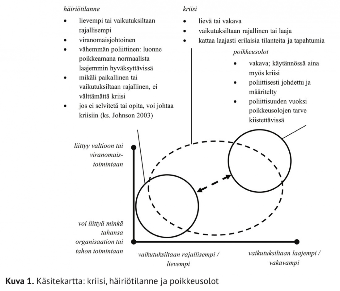 Kun tieto irtoaa jaetuista kriteereistä ja kiinnittyy tunnekokemuksiin, valheelle avautuvat lähes rajattomat markkinat — tietäähän jo kulunut sanontakin, että valhe kiertää puoli maapalloa sillä aikaa kun totuus vasta vetää housujaan jalkaan. Mieleen tulee hakematta Hannah Arendt, jonka mukaan ”jatkuvan valehtelun tarkoituksena ei ole saada ihmisiä uskomaan valheeseen, vaan varmistaa, ettei kukaan usko enää mihinkään.” Vaikka valheilta ei siipiä katkaistakaan käsitteellisellä tarkkuudella, yhdentekevää ei ole se, miten asioista puhumme. Sami Pihlström muistuttaa Kanavassa (7/2025) käsitteiden ja totuuden välisestä suhteesta: ”Kun totuuden ja tosiseikan (ja siten myös toden puhumisen ja valehtelemisen) käsitteet rikkoutuvat, häviää koko yhteisöllistä elämäämme perustavalla tavalla jäsentävä oletus siitä, että ihmiset yleensä uskovat asioiden olevan jollakin tavalla tai ajattelevat ja väittävät maailman olevan jonkinlainen.” Ville-Pekka Niskanen osallistuu keskusteluun Kosmopolis-lehden artikkelillaan, jossa tarkastellaan kriisinhallintaan liittyvien suomenkielisten käsitteiden määritelmiä, niiden suhteita ja kansainvälisiä vastineita. Kriisit ovat jo itsessään hankalia, eikä niiden kohtaamisessa auta se, että yksi puhuu aidasta ja toinen aidanseipäästä.
